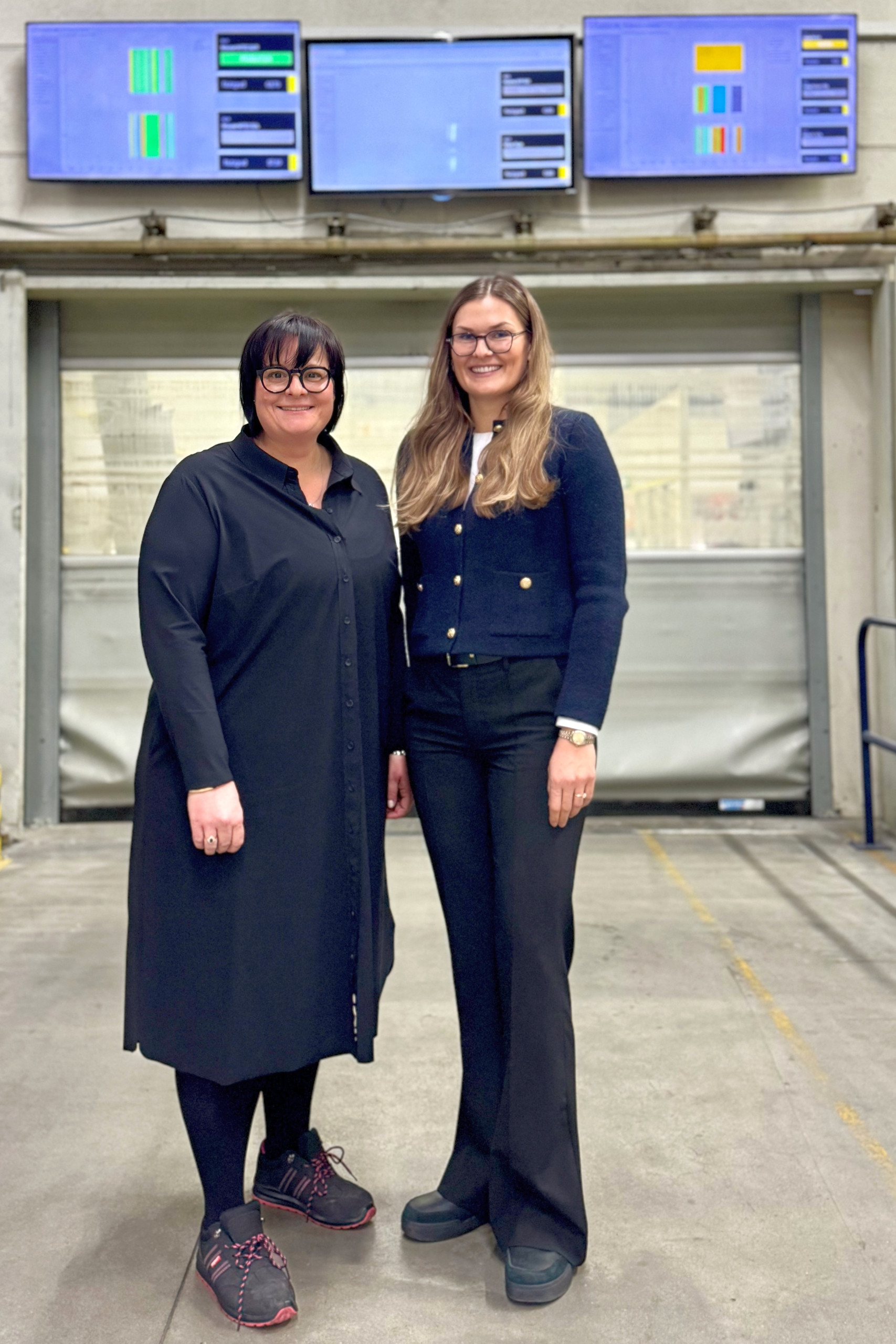 Kennzahlen und Transparenz beherrschen die Produktion. v.l.: Nathalie Kletti, Geschäftsführerin MPDV, Vanessa Förster, Leitung Operations der Moeschter Group